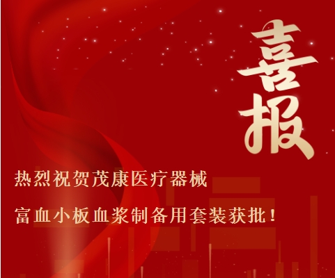 安徽茂康醫療器械有限公司于2025年4月23日順利取得富血小板血漿制備用套裝注冊證!